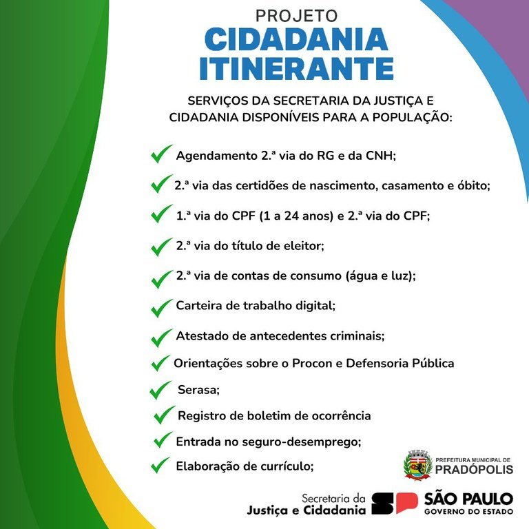 De 16 a 18 de novembro Pradópolis receberá a unidade móvel da Secretaria Estadual de Justiça e Cidadania, que realiza diversos serviços para a população.